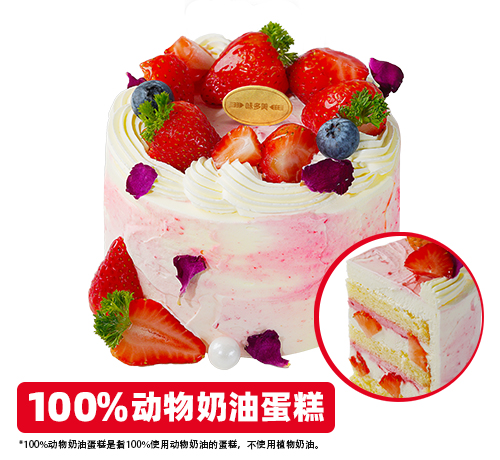 100%动物奶油蛋糕,草莓鲜果夹心
